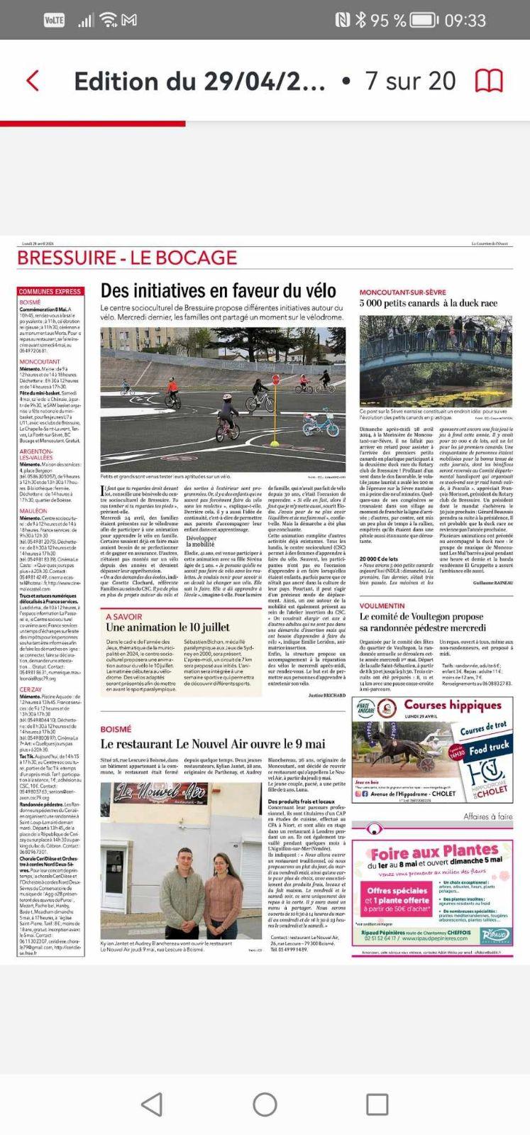 Merci au Courrier de l'Ouest qui consacre un article à l'ouverture de notre restaurant dans son édition du 29 avril 2024.