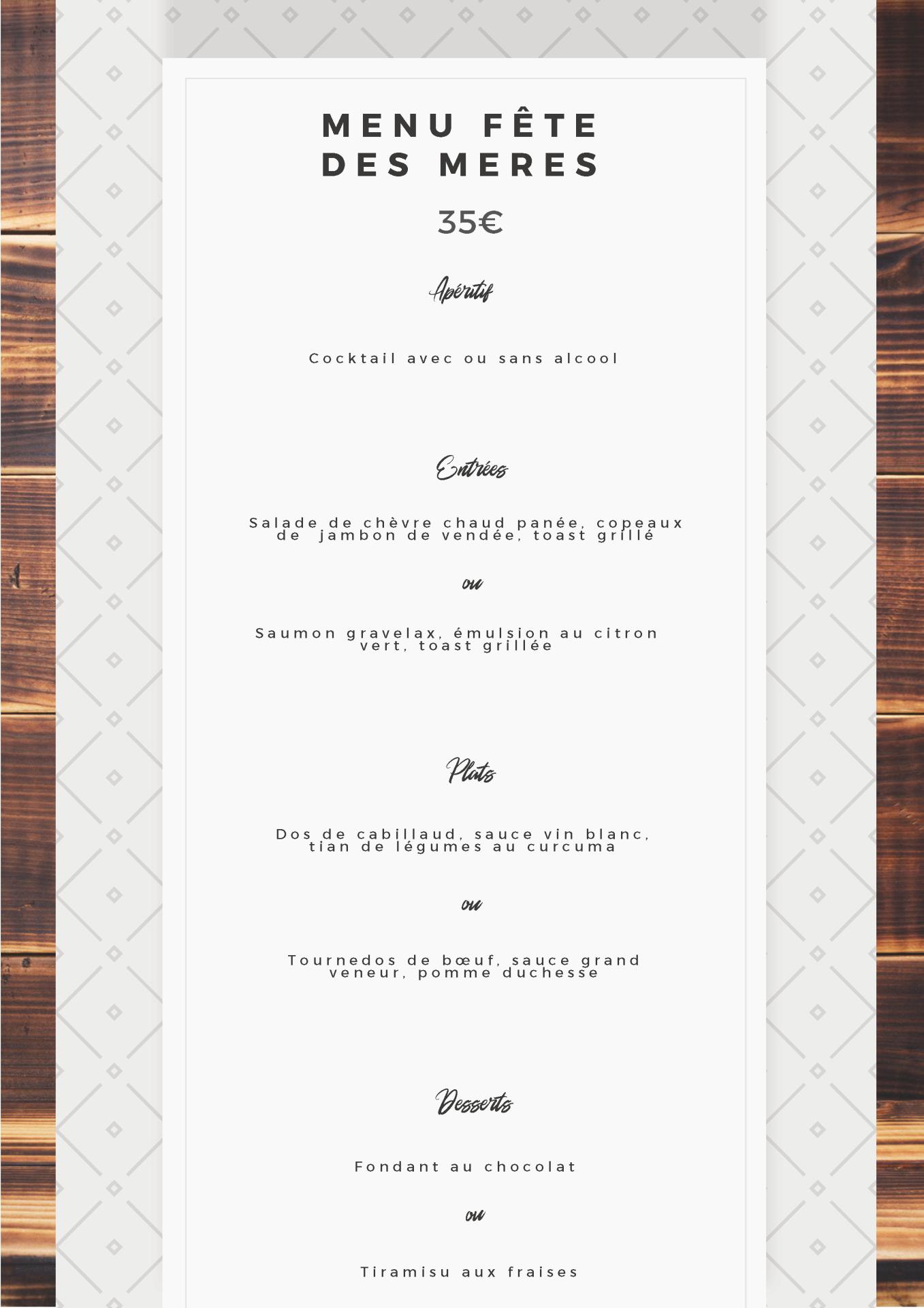 Exceptionnellement, un repas sera servi le jour de la fête des mères le dimanche 26 mai !